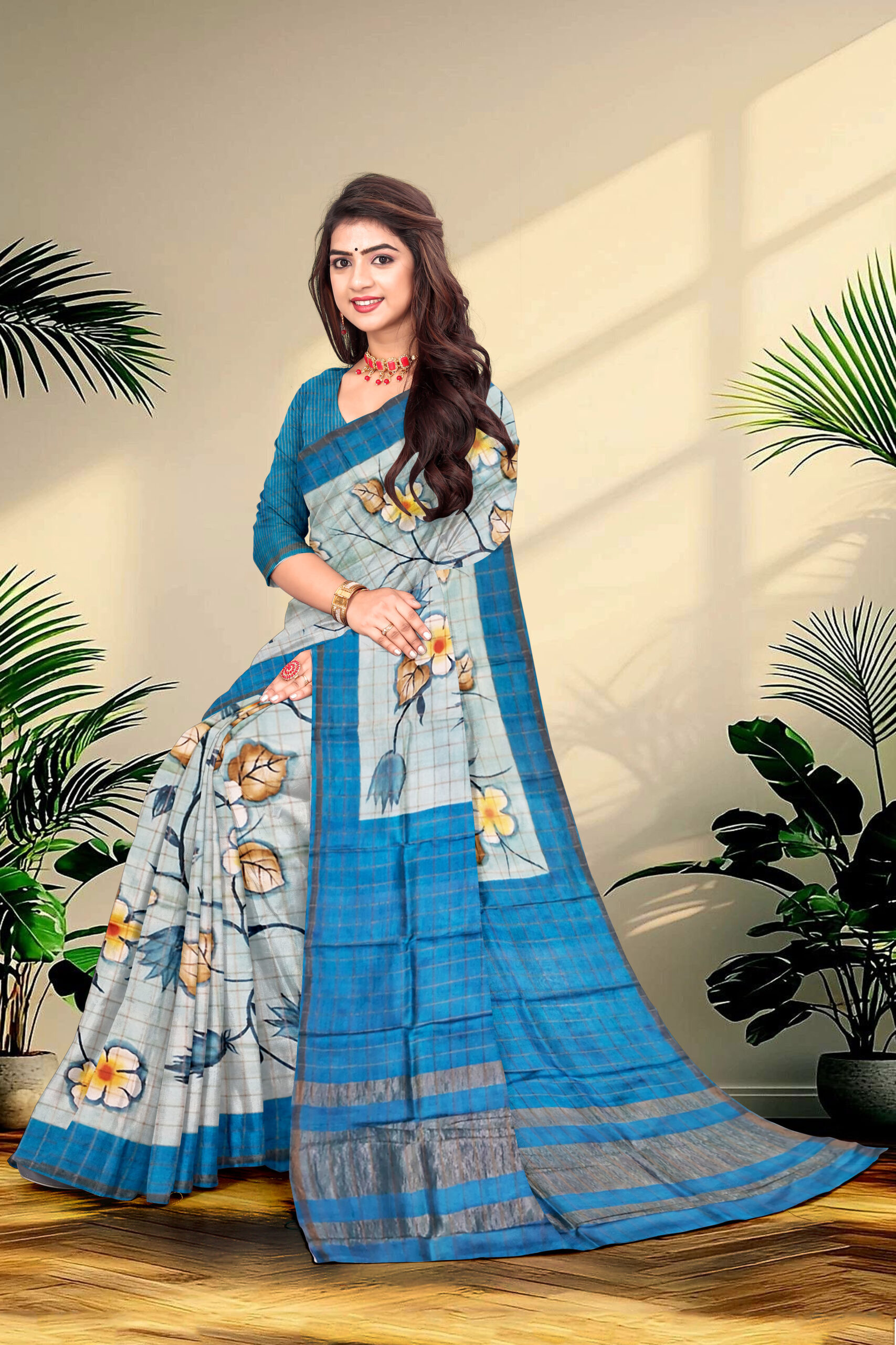 Hand Paint Tussar Silk